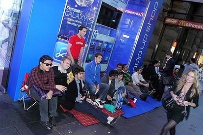 Già fuori dallo shop Samsung si è formata una lunga fila di persone, organizzate anche in tende, che sono pronte alla guerra pur di acquistare, o sarebbe più giusto dire prendere in regalo, un Galaxy S II a soli 2$. Da non credersi ma è andata proprio così!!